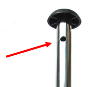 Die Spannstange hat oben ein kleines Loch. Durch dieses kleine Loch können Sie ein Spannseil fädeln, an dem Sie die Oberkante des Netzes befestigen können.